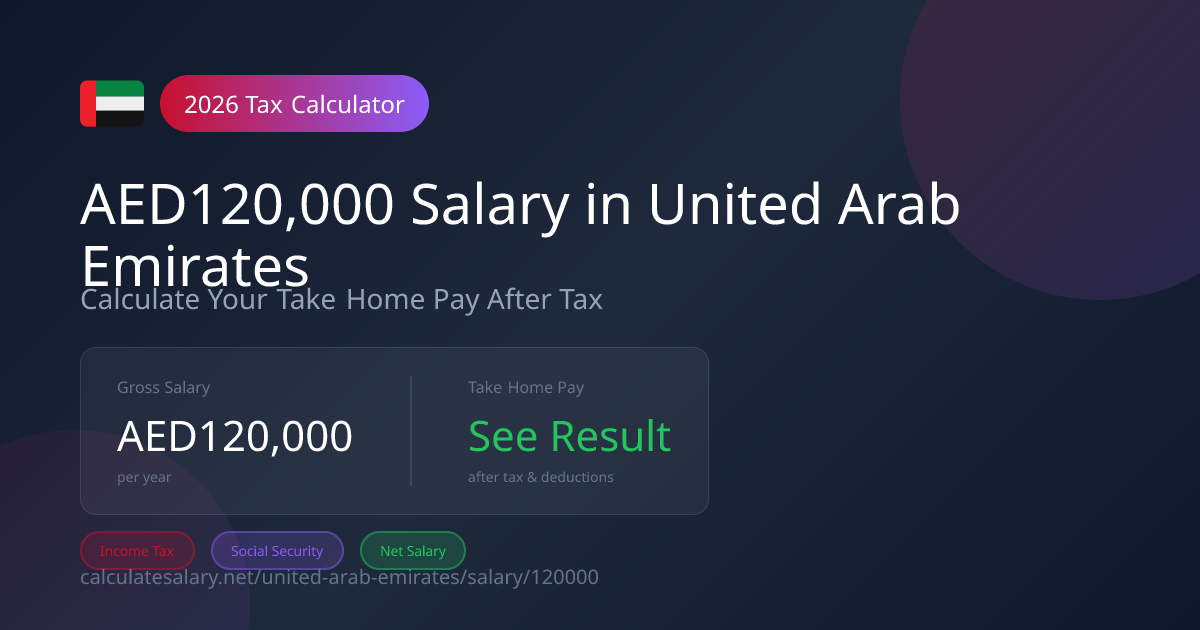 If you earn AED 120,000 per year in United Arab Emirates, you will take home AED 120,000 after tax and social security. That's AED 10,000 per month.